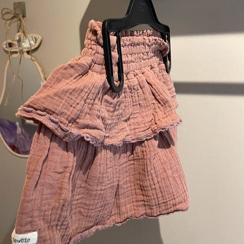 Newbie Tyll skjørt i rosa farge, størrelse 92. Skjørtet har elastisk midje for justerbar passform, samt knapper i linning for ytterligere stramming, som gjør at skjørtet passer lenge. Nydelig blomster brodering i nedre kant.