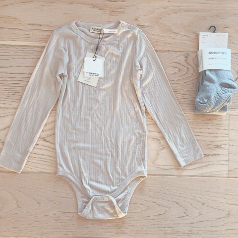 5 bodyer (rosa med pinnsvin/sopp, rosa med gullprikker, burgunder med frynse, offwhite med blomstrer, rosa med sløyfe)