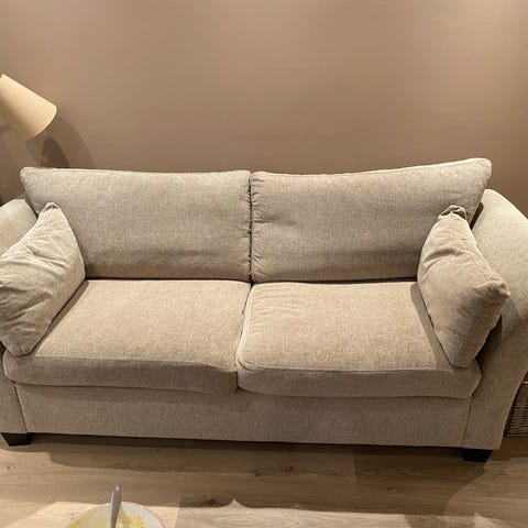 To-seter sofa fra norsk design gis bort. Usikker på hvem. Putene kan vaskes i vaskemaskin på ullprogram da det er laget av norsk ull. Gis bort da overgang til ny. Kan forekomme feil i annonsen. Det er mye bruk i sofaen igjen! Veldig god å sitte i! Gis bort samlet. Er noen kloremerker etter katt