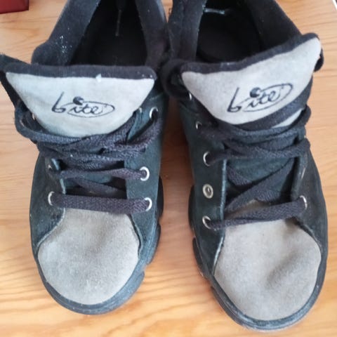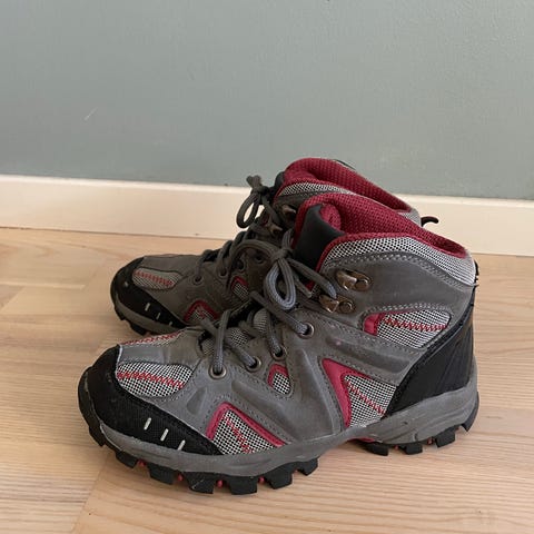 Scarpa fottur tursko i størrelse 35 med grønt skinn og gummisåle. Egnet for fotturer og utendørs bruk.