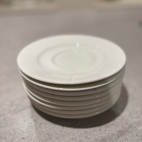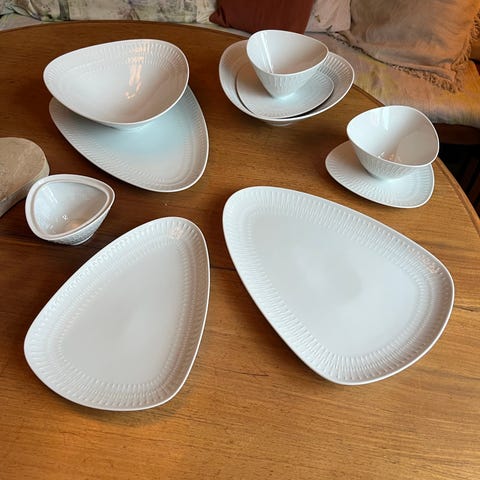 Seks klassiske skåler/asjetter fra Lorenz Hutschenreuther, produsert i Tyskland. Hvit glasert porselen med diskret relieffdekor. Pent brukt, ingen skår eller sprekker.
