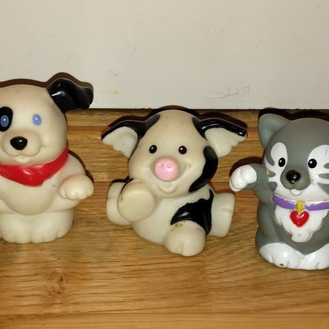 Little People dyrefigurer bestående av en kanin og en hund. Laget i plast med detaljer som pels og manke.