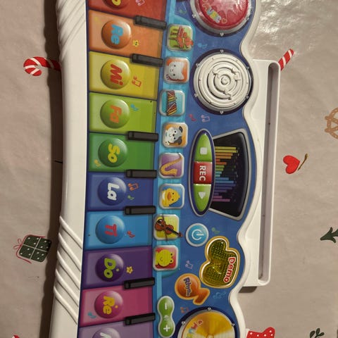 Makes different sounds of animals and plays some music. It also has a mode to play as a piano. It also has lights