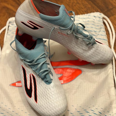 Adidas fotballsko størrelse 42i blå og rosa farger. Skoene har knotter for bruk på gressbaner og leveres med oppbevaringspose i neon grønn. Egnet for fotballspillere som trenger sko med god grep og komfort. Brukt bare 10 ganger for trening selges siden sluttet på fotball kom med bud og trades