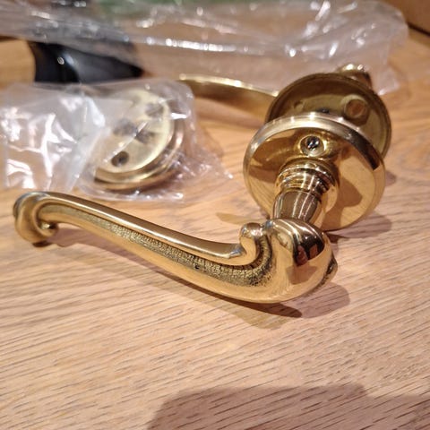 Alle beslag, skruer og gjennomgående skruer for fester følger med.