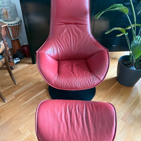 Veldig pent brukt skinnstol med puff fra Bolia selges samlet. Det er ingen stygge merker eller hull.