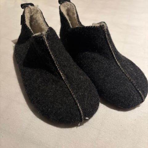 To par tøfler i ull, blå og svarte. Semi harde såler.