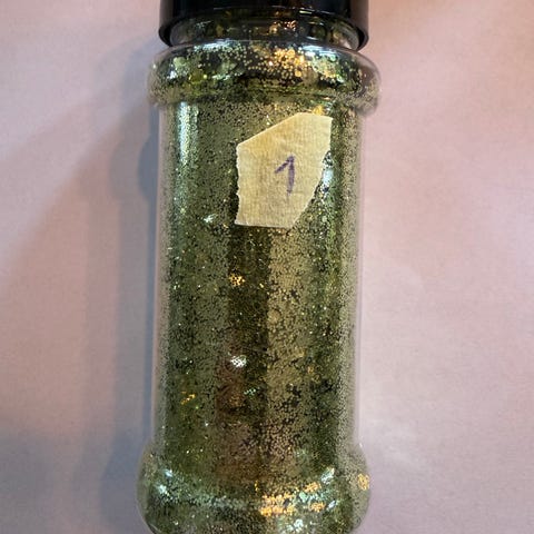 Flaske med stein (naturlig pyritt eller svovelkis?)
