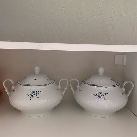 Olaria de Alcobaca suppeterrin med 2 kopper+skåler selges samlet.