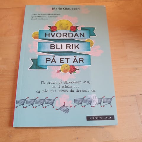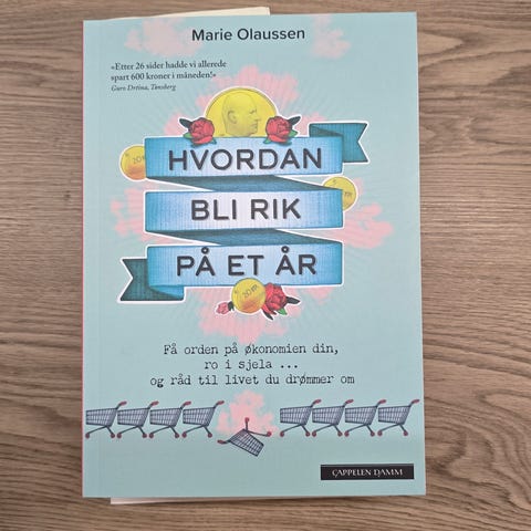 Marie Olaussen Hvordan bli rik på et år bok. Inneholder informasjon og veiledning om økonomi og sparing. Passer for lesere som ønsker å forbedre sin økonomiske situasjon over ett år.