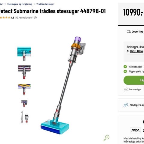 Flere tilbehør for ulike rengjøringsbehov. Produktet er pakket i originalemballasje.