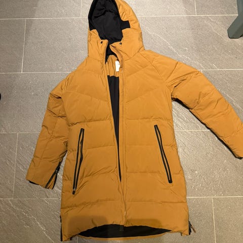 Jeg kjøpte den i Italia for ca 8000kr. Den er fora tykt med dun og har en pen pelskrage på hetta.