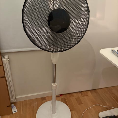 En elektrisk varmluftsvifte- gir mye varm for en såpass liten sal. Knapt brukt.