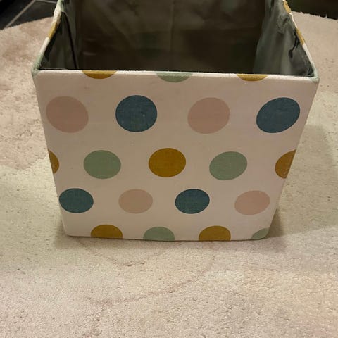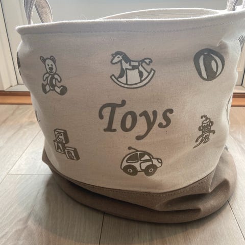 Selger en tøy lekekasse fra perfect home collection. Vært i normal bruk til babyleker og den rommer overraskende mye. Veldig søt å ha på barnerommet.