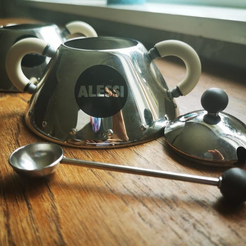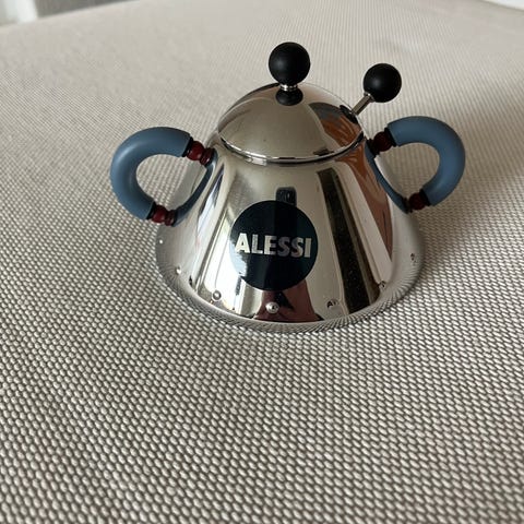 Alessi sukker og fløtesett i rustfritt stål - ikonisk design