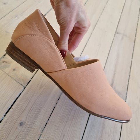 For ref bruker jeg str. 39/40 og foten måler ca. 25,5 cm. Skoene passer meg)