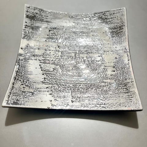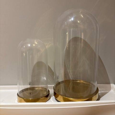 Flott stor «glasskuppel» på «sølvfat»i tre deler. Kjøpt på Bohus. Flott med ulike levende lys eller blomster. 35 cm høy og 25 cm i diameter. Semsket svart underside på fatet. Kan sendes.