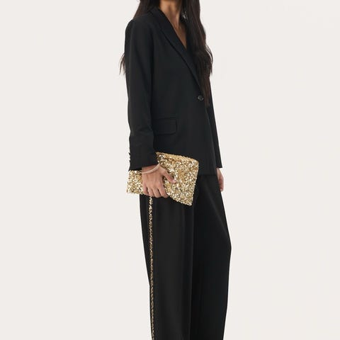 Selger en rutete sort kjole i dempede grå toner. Kjolen har en rett og behagelig passform med lange ermer og en diskré volangkant nederst, som gir et mykt og feminint uttrykk.