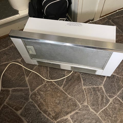 Miele kjøkkenventilator i rustfritt stål med innebygde lys. Designet for montering under skap. Utstyrt med ventilasjonskanal og elektrisk tilkobling. Blir demontert før henting/sending da skapet ikke følger med.