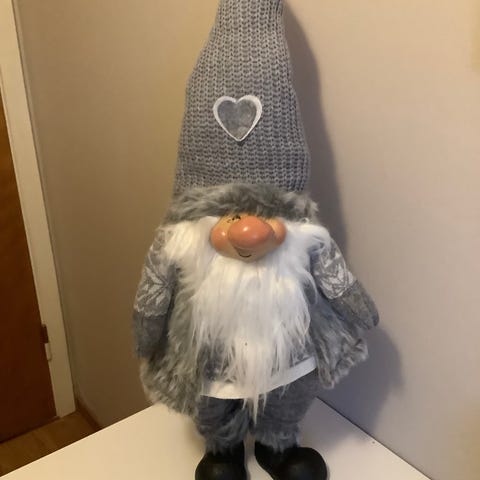 Pen lysestake med en munter og glad nisse som holder i seg godt fast😊