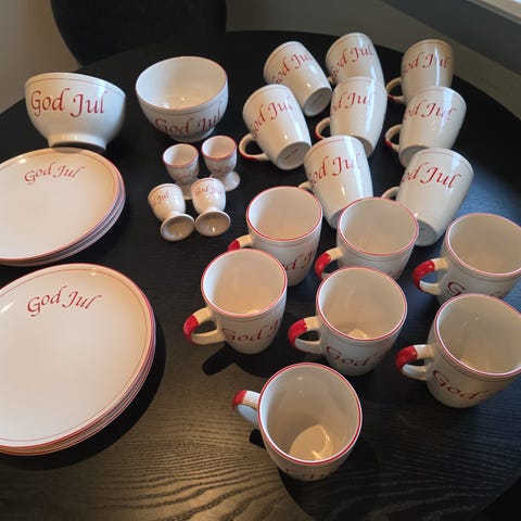 Har satt ned service 200 kr. Har også masse håndstøpte julelys, englevinger, fugle pynt og søtt antikk service deler. Ta kontakt:)