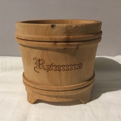 Diameter øverst er 10cm og høyde er 9,5cm. Mye sjatteringer i treverket. Pent brukt.