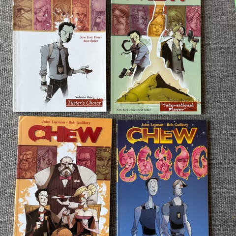 Chew is a darkly comedic, genre-bending comic series set in a world where food has strange and often disturbing consequences. The story follows Tony Chu, a detective who gains psychic visions from anything he eats — including people.