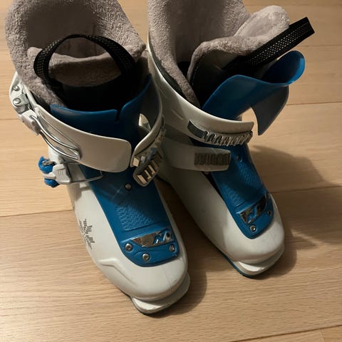Blå og hvit Nordica slalomsko til barn. Ca str 33. Merket 200-255. 255 mm. God og varm sko. Mye bruk igjen.