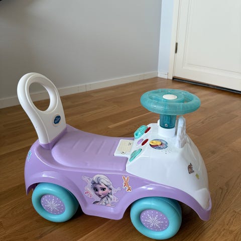 Lekebil til å sitte på og bruke beina til å komme seg fremover