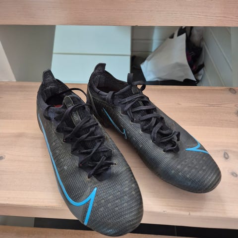 Nike Jr Vapor 14 Academy FG/MG fotballsko i størrelse 35. Skoene er designet for fotball med FG/MG knotter, som gir godt grep på både gress- og kunstgressbaner. Fargen er svart med detaljer i hvitt og gult.