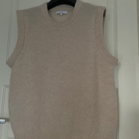 Ermeløs genser 30 % baby alpakka ull, brukt 2 ganger, one size, men for stor for meg. Passer best til noen som brukker str. L. Nydelig bringebær farge. Må selges fordi gikk ned i vekt til str. s. Seget fordi er for stor i str.