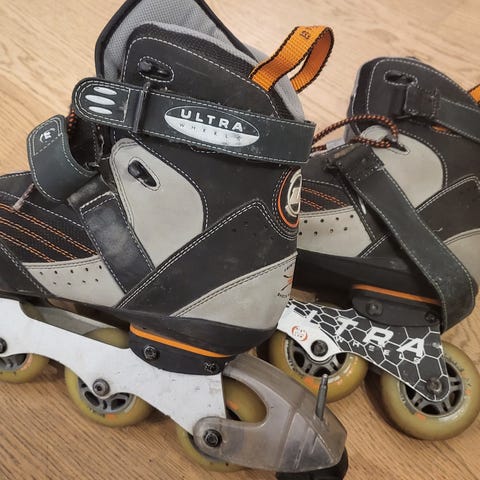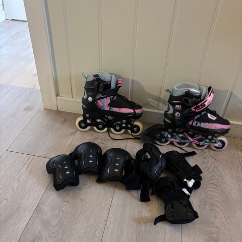 Inlines /rollerblades stl 33 med hjelm och kne+handledsbeskyttelse.