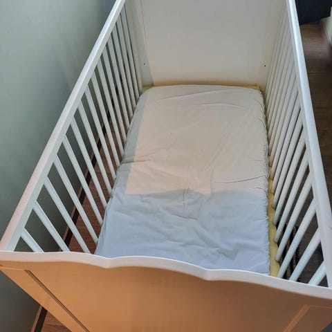 Troll Sprinkelseng barneseng i hvit farge. Designet for barn med sikkerhetsrekkverk rundt sengen. Noe bruksmerker. Må hentes i Langesund