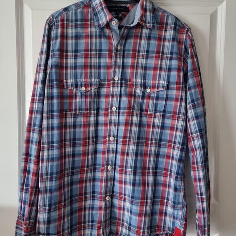 Tommy Hilfiger skjorte i størrelse S. Flerfarget mønster i bomullsmateriale. Designet for menn.