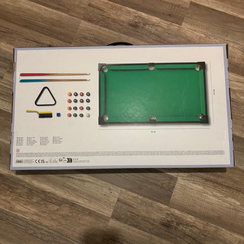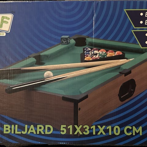 Biljardkuler med trekant i tre for plassering på innendørs lite biljardbord.