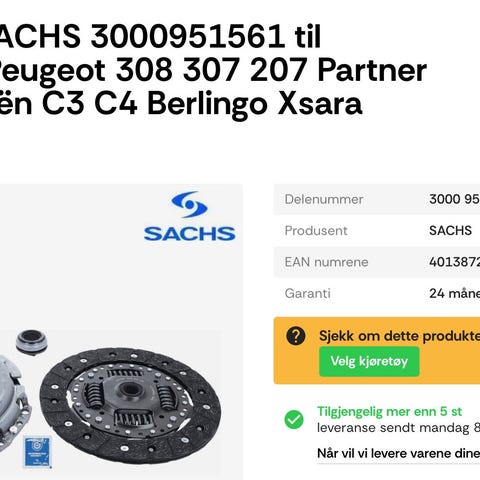 2x Nye Sachs Clutchsett til Citroen⁄Fiat⁄Opel⁄Peugeot⁄Toyota⁄Vauxhall