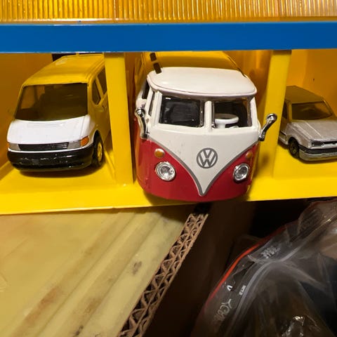 Volkswagen Beetle modell bil hvit med radioantenne