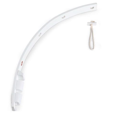Designet for oppbevaring av bøker og små leker, med en stang foran for å holde gjenstander på plass.