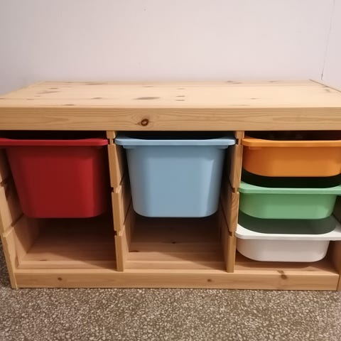 Selger ni ubrukte IKEA FLISAT vegghylle for barn laget i tre.