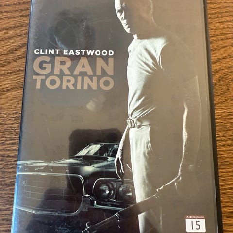 Gran Torino DVD med Clint Eastwood. Filmen er i DVD-format og inneholder action og drama. Språk og undertekster er ikke spesifisert. Passer for voksne seere.