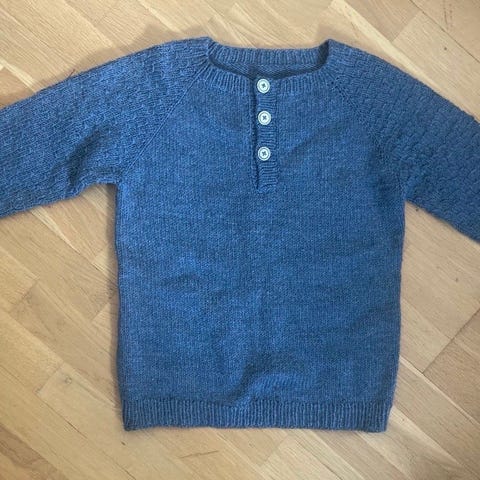 Unisex barnegenser strikket i Alpakka + silk mohair på bærestykke og blanding av mohair ull på armer + bol. Selges til god pris.