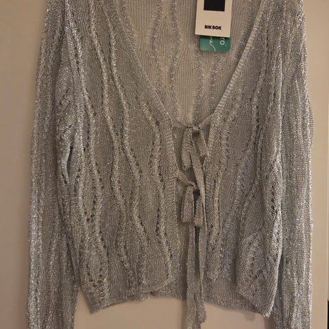 Bik Bok Cardigan i størrelse M, laget av mohairull, grå, lite brukt, selges kr 100.