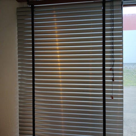 Trelameller persienner i kirsebær/mørkebrunt treverk