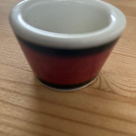 7,5 cm høy og ca 8,5 cm I diameter øverst.