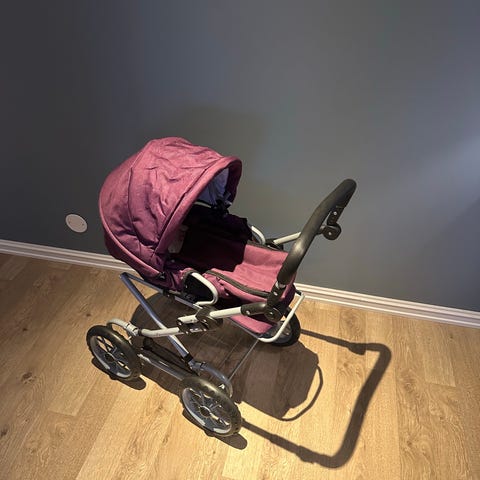 Denne vognen har gitt mye glede her hos oss, og nå håper vi den kan trille mange turer på ny og gi glede til noen små barn. Vognen er for fin til å stå på samle støv.