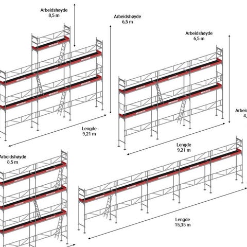 Passer til alle stillaspakker på 3 etg. Med eller uten konsol. Inkl. rammer og festeelementer.