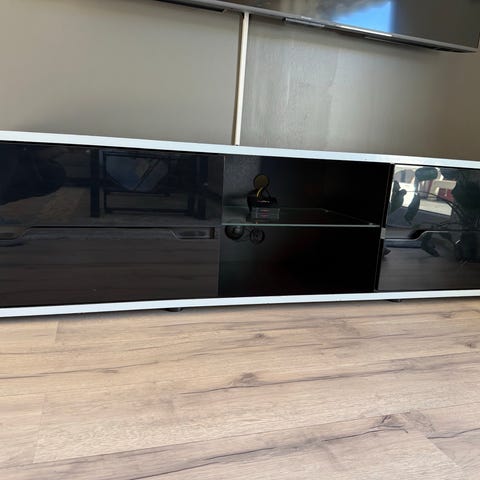 Siste pris, må bort i løpet av helgen 10-11 januar. Pent brukt tv benk med 4 skuffer og glasshylle med lys. Må hentes.
