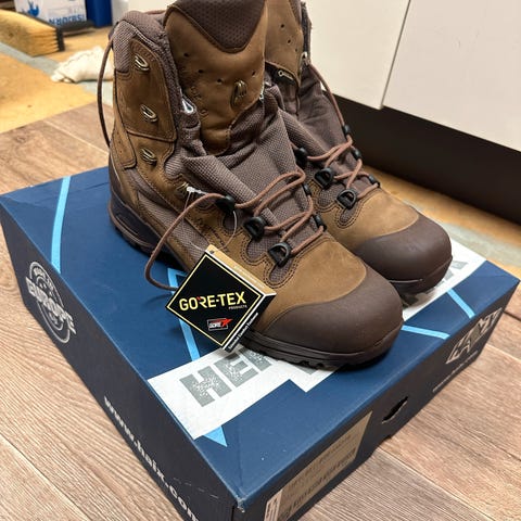 Selger et par lite brukte Haix sko. Fargen er mørk brun, robuste sko i goretex. Størrelse 42
