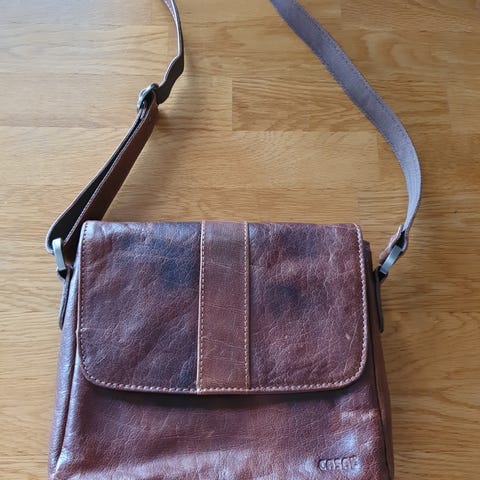 Minimalt brukt The Monte Skulderveske i vakker brunfarge. Vesken har glidelås og flere lommer, inkludert en utvendig lomme med glidelås. Innvendig fôr med The Monte-logo. Skulderrem som kan festes på siden eller øverst, med lengderegulering. Koster 1299 ny. Italiensk design og kvalitet.