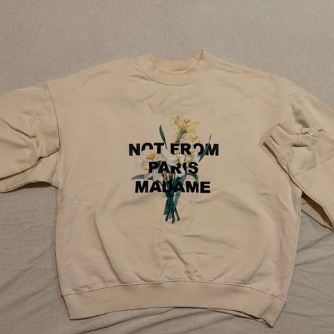Ecru, kjøpt ny av meg på Høyer Karl Johan. Medium i str, men heller litt baggy enn slim. Sender gjerne flere bilder.